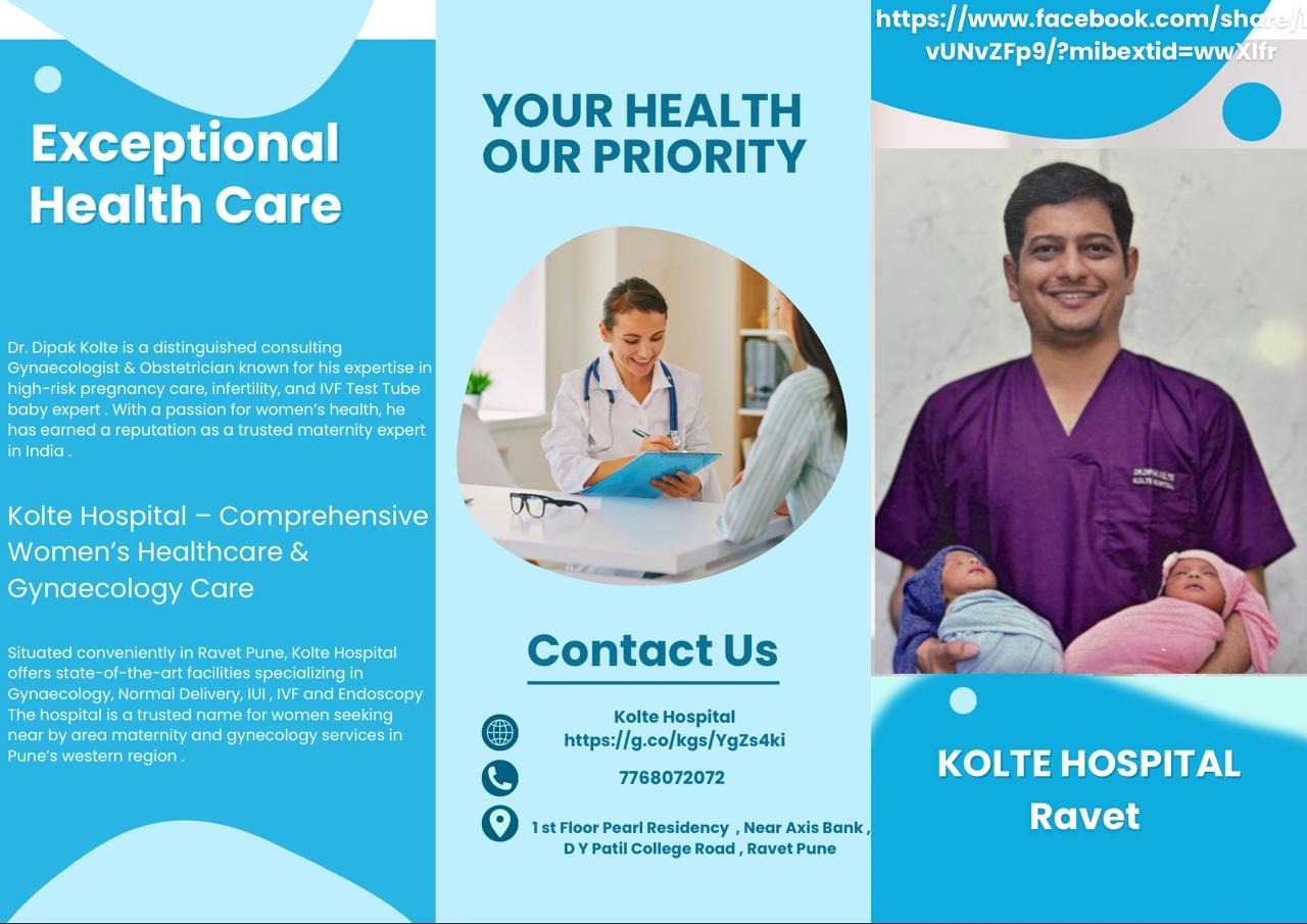 Dr. Dipak Kolte is recognized as one of the Best Gynecologists in Ravet, PCMC, Pune, offering comprehensive and compassionate women’s healthcare at Kolte Hospital, Ravet. With extensive clinical experience, Dr. Kolte specializes in advanced obstetrics and gynecology treatments, ensuring safe and personalized care for women of all age groups. At Kolte Hospital Ravet PCMC Pune, patients receive expert consultation for high-risk pregnancy care, normal delivery, cesarean section, infertility treatment, PCOS management, menstrual disorders, and menopause care. Dr. Dipak Kolte is known for his patient-friendly approach and evidence-based treatment methods. The hospital is equipped with modern medical facilities, advanced diagnostic services, and well-maintained maternity care units to provide complete mother and child care under one roof. Dr. Kolte also specializes in laparoscopic gynecological surgeries, fibroid treatment, ovarian cyst management, and uterine disorders. Women seeking trusted maternity services in Ravet, Pimpri Chinchwad can rely on Dr. Dipak Kolte for safe pregnancy care, regular antenatal checkups, and postnatal support. His commitment to ethical practice and affordable healthcare makes Kolte Hospital a preferred choice in PCMC. If you are searching for a top gynecologist in Ravet PCMC Pune, book an appointment with Dr. Dipak Kolte at Kolte Hospital for expert and compassionate women’s healthcare services.